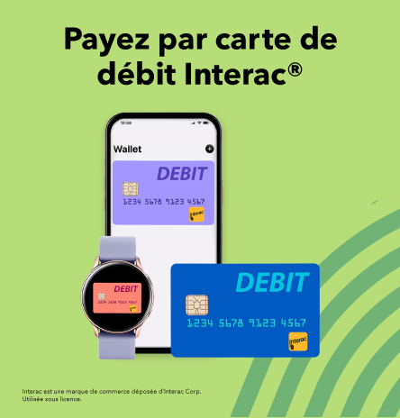 L’utilisation de la carte de débit Interac simplifie le paiement des transports en commun. Il n’y a pas de carte à recharger et pas de billets dans votre poche. Pour plus de simplicité, ajoutez une carte de débit Interac à votre portefeuille électronique pour présenter votre téléphone et effectuer un déplacement.